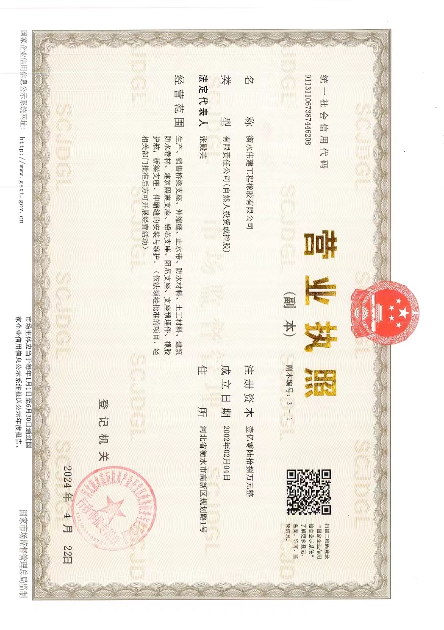 衡水偉建工程橡膠有限公司位于河北省衡水市高新區規劃路1號,成立于2002年,占地面積二萬六千平方米。